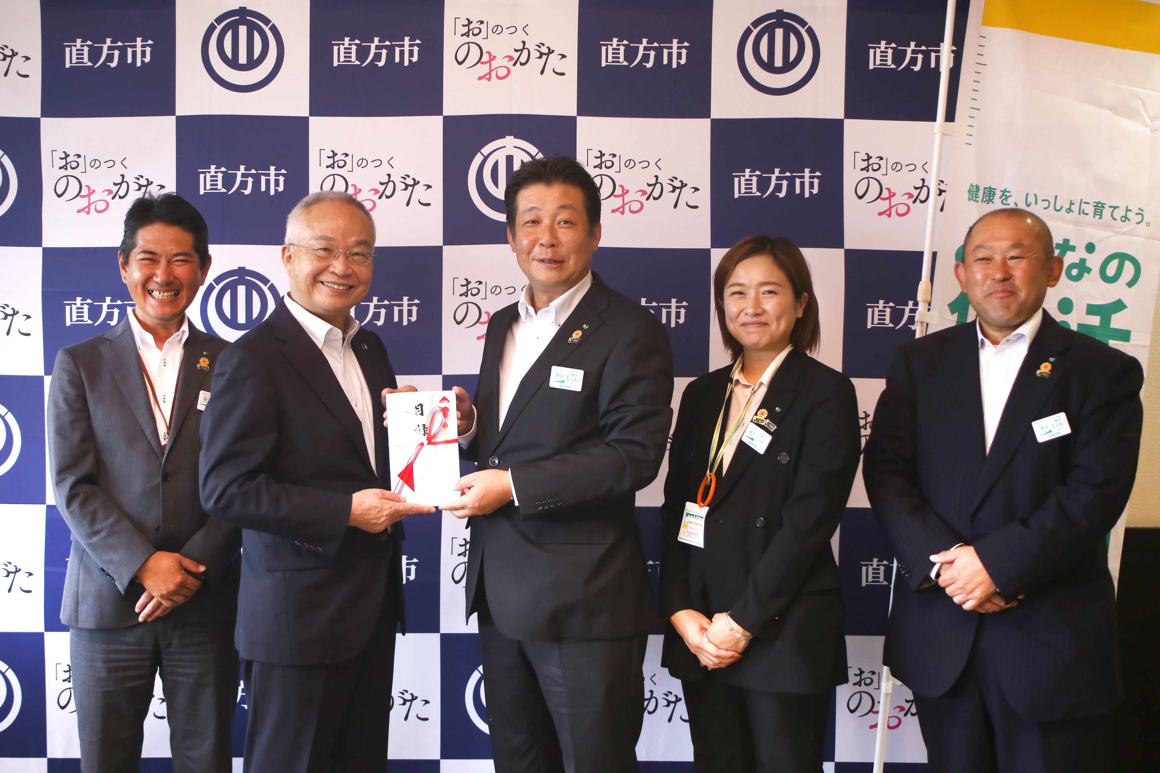 同社の村山支社長は、「直方市の健康づくりのために、継続して貢献していきたい」と話し、市長は、「寄附いただいた皆さまの想いに応えられる活動をしていきたい」とお礼を伝えました。