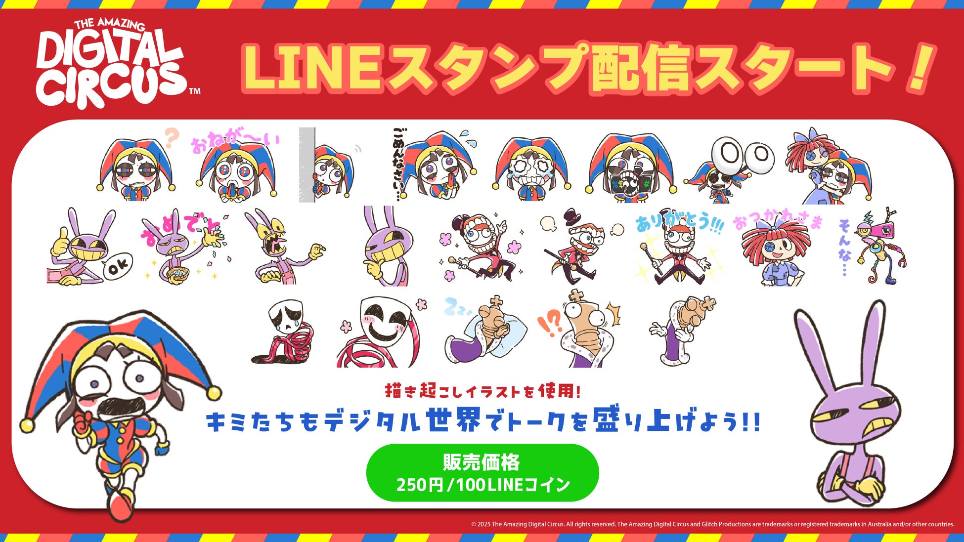 『The Amazing Digital Circus』初のLINEスタンプが販売開始。表情豊かなキャラクター達の個性あふれる描きおろしデザインたちが、あなたのトークを楽しく彩ります!
