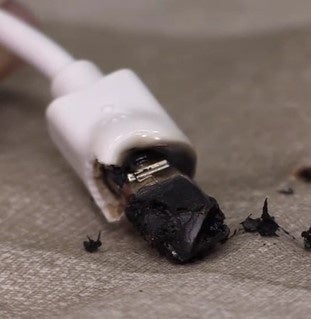 当該製品を充電中、当該製品及び周辺を焼損する火災が発生した。