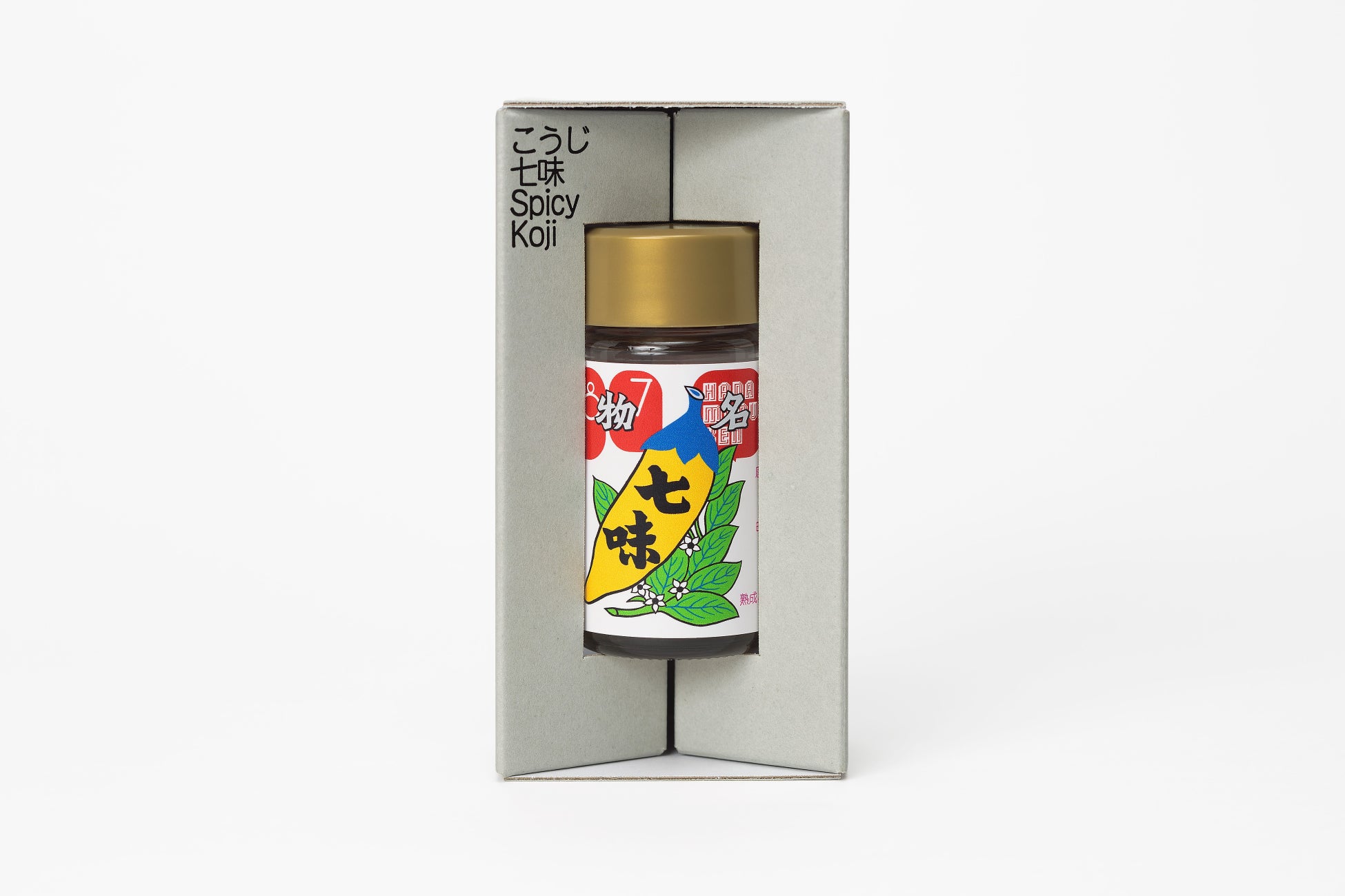 米こうじから生まれたコク味調味料「熟成こうじパウダー」を配合した、オリジナルの香辛料です。「八幡屋礒五郎」の定番商品「七味唐からし」をベースに、みそ料理の新たな魅力を引き出すことを目指して開発しました。