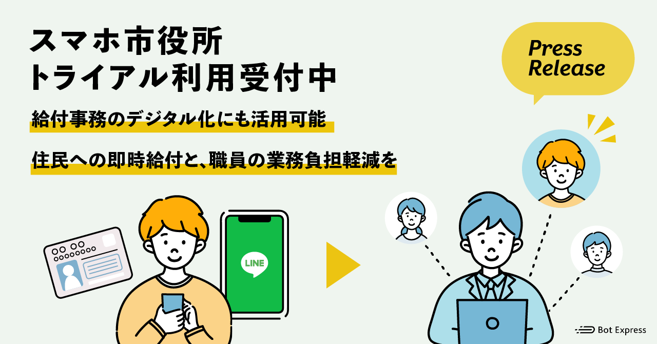 Bot Express、スマホ市役所のトライアル利用を受付中。給付事務のデジタル化にも活用可能、住民への即時給付と職員の業務負担軽減を実現