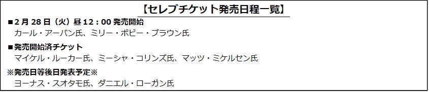 ★さらに2月28日(火)より、ミリー氏とカール・アーバン氏のセレブチケットが発売決定!