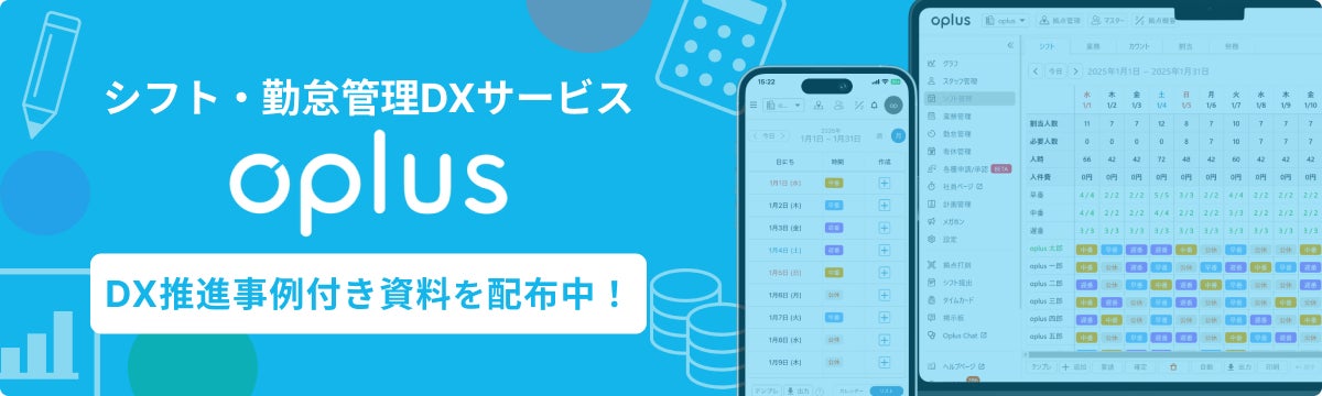 「oplus」は、ブラウザ・スマホ・アプリの全てに対応したシフト・勤怠管理DXサービスです。シンプルで直観的に操作でき、100名まで無料でご利用可能なプランもあり、紙・エクセルから脱却する上で気軽にご導入いただけます。
