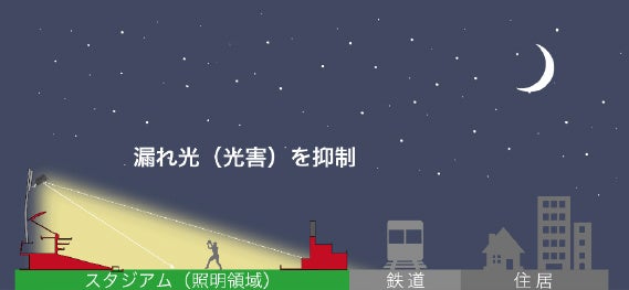 プロ野球対応の快適な競技用照明と、4K・8K放送にも適合する照明仕様、光害対策ガイドライン「光環境類型E1」(※1)に準拠、全てを適えた革新的照明システムです。