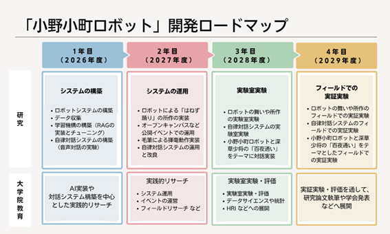 まずは、第一フェーズとして、本学ロボティクス学科の教員がそれぞれの専門性をもちより、2026年秋ごろにハードウェアのベースを完成させる予定です。