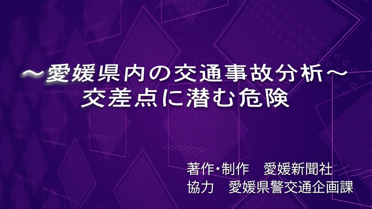 株式会社 愛媛新聞社(本社:愛媛県松山市大手町1丁目12-1、代表取締役社長:加藤令史)は、愛媛県警交通部交通企画課の協力を受け、愛媛県内で発生した交通事故データを基に、グラフ化による発生傾向の分析、Google earth pro、Google my map、ストリートビューなどを活用した事故現場の表示、主要な事故要因のアニメーション化を行い、交通事故の減少を目指す「シリーズ 愛媛の交通事故徹底分析~データ解析・ビジュアル化」に取り組んでいます。