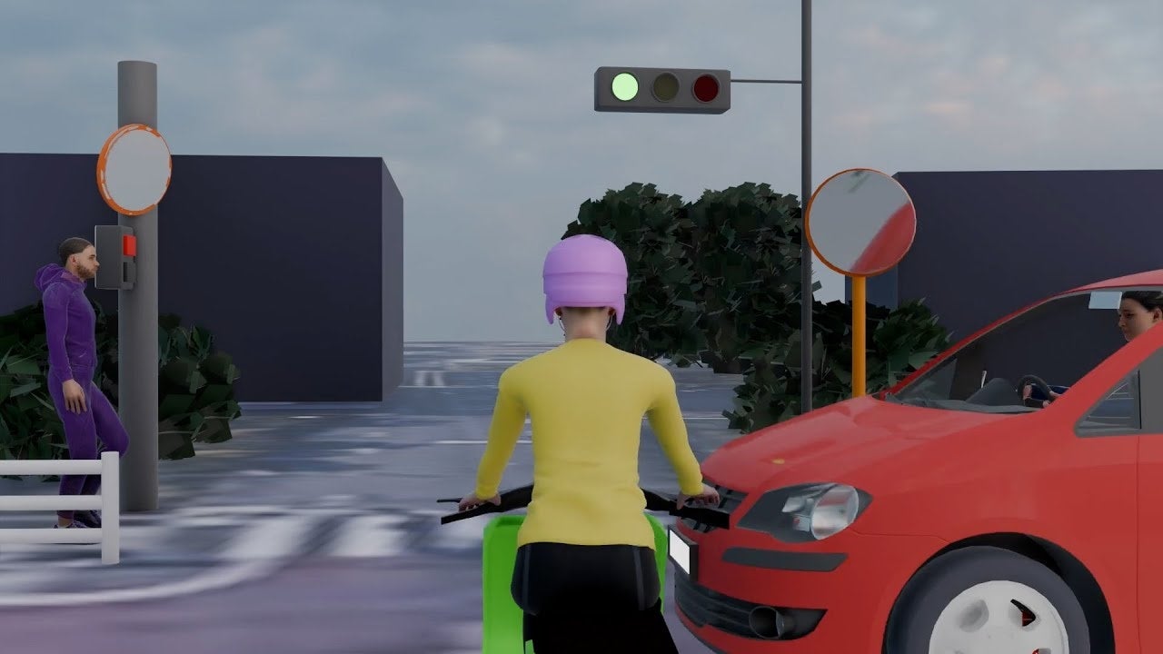 信号機のない交差点と、信号機のある交差点で、どのような事故が起きやすいのかをGoogle earth proやストリートビューを使って説明するとともに、アニメーションで事故形態や注意点を分かりやすく解説しています。