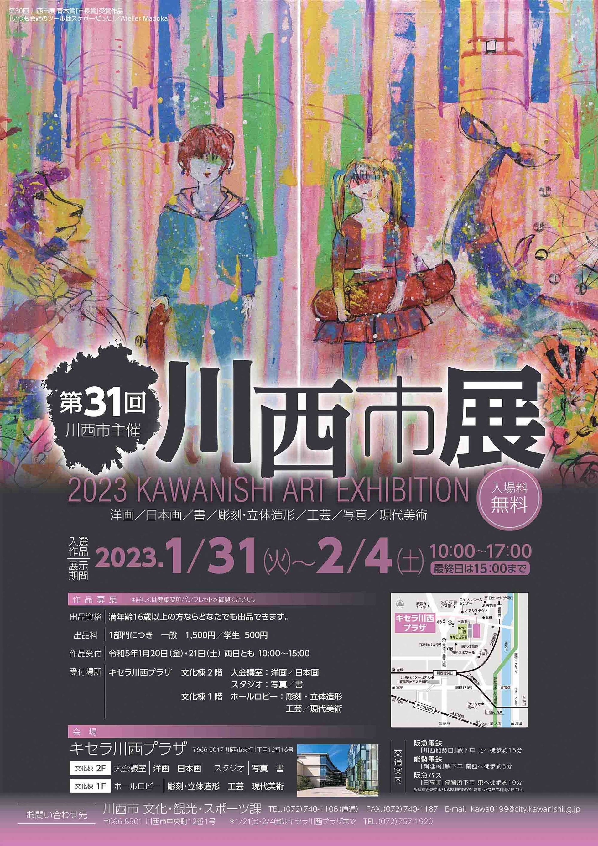 美術を愛する人々の創作活動の成果を発表する場や市民生活の中に美術の楽しさを普及することを目的に、市内・外を問わず多くの芸術家に参加してもらう「第31回川西市展」が令和5年1月31日(火)~2月4日(土)に開催する。