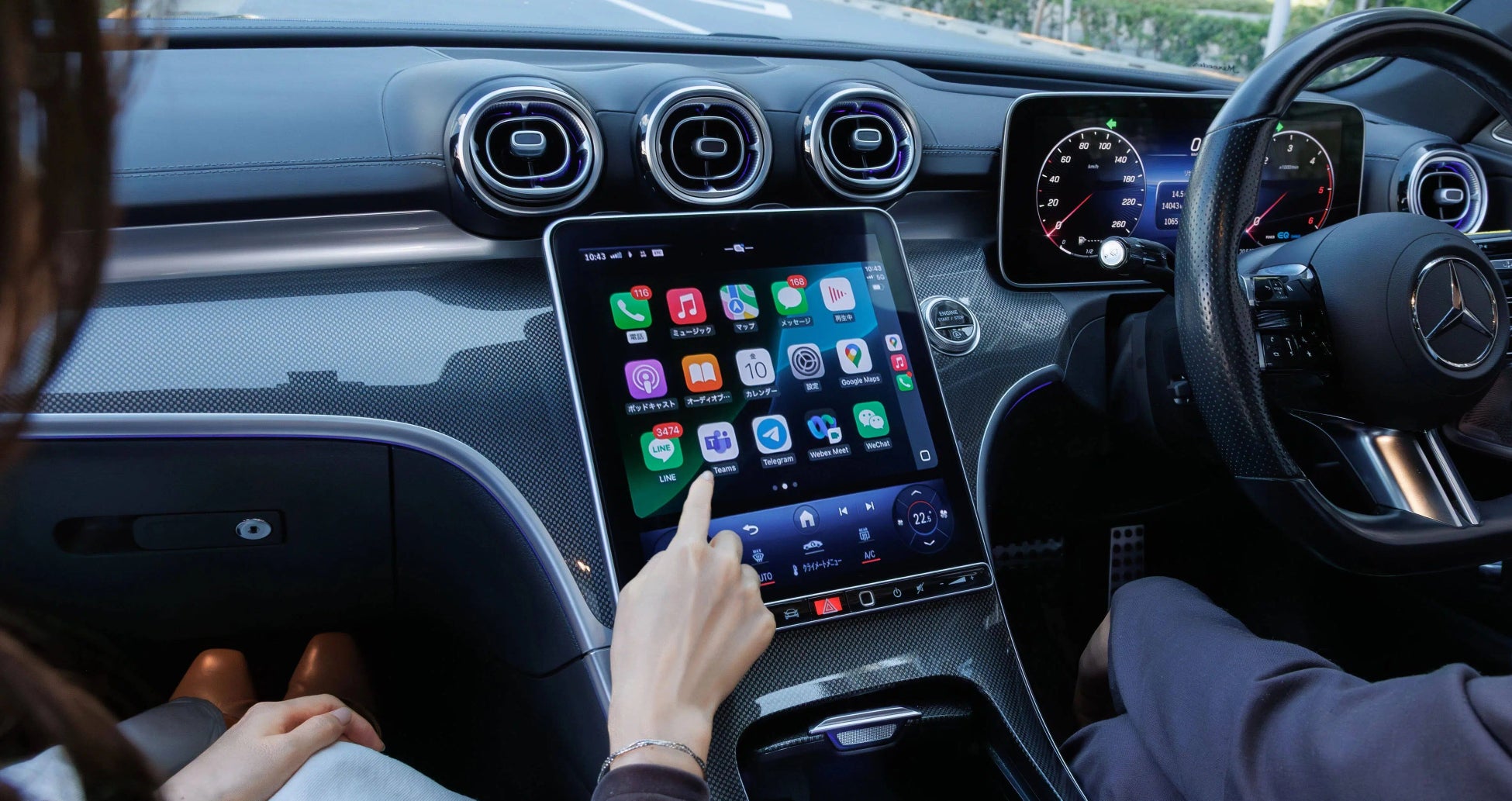 ナビゲーション、地図、電話、メッセージ、LINE、音楽など、さまざまな機能をワイヤレスで車の大画面に表示できます。