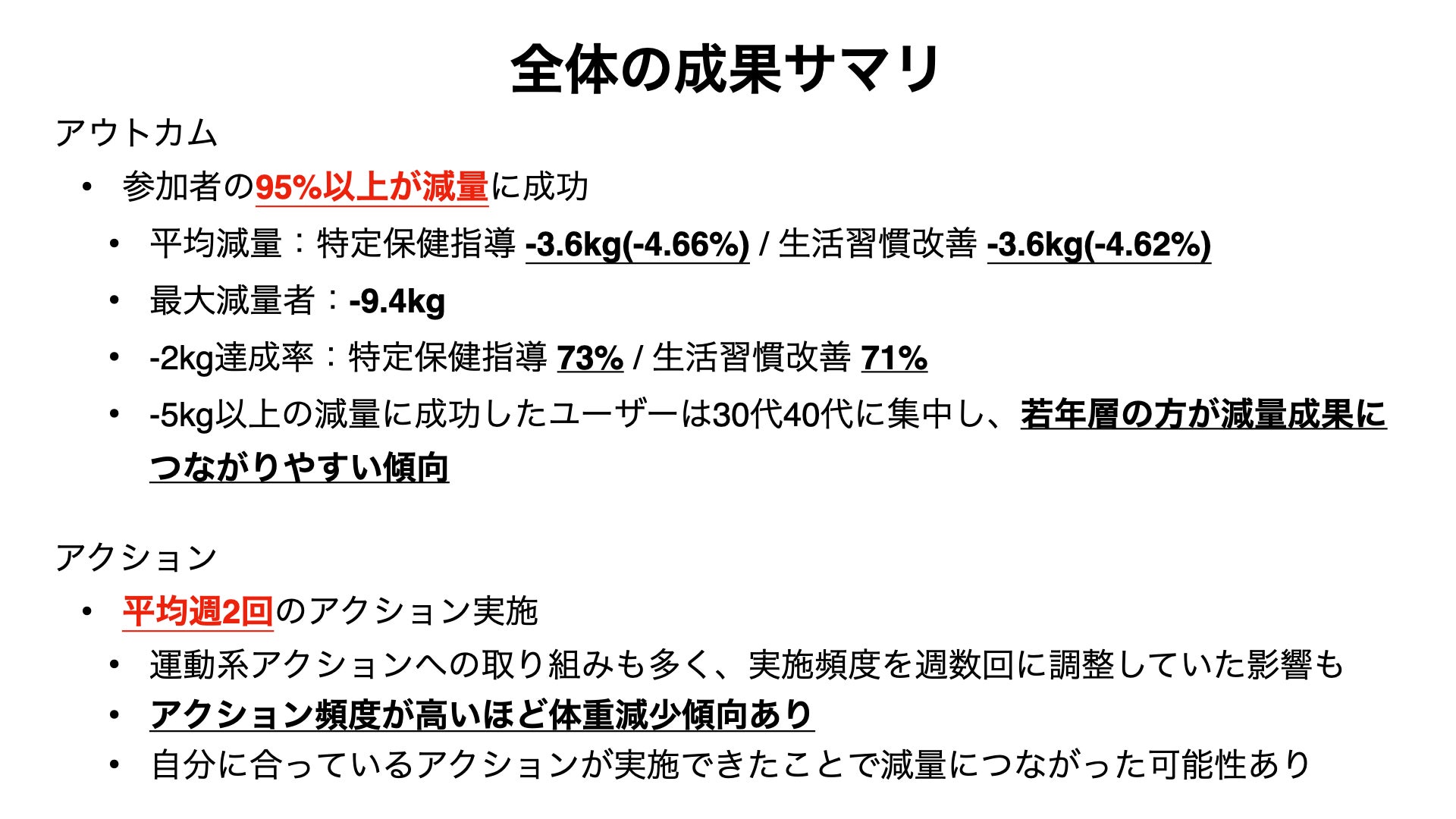 参加者の95%が減量に成功、最大減量数は-9.4kg