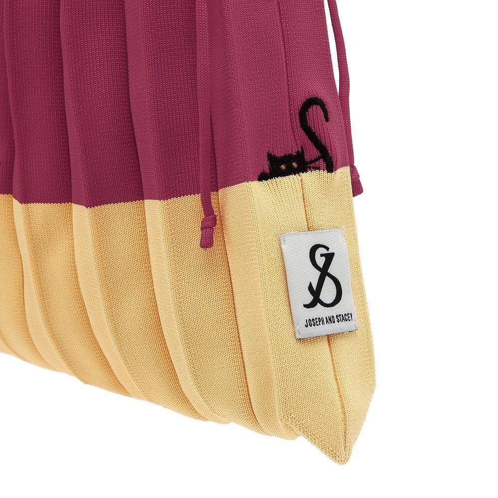 「JOSEPH AND STACEY」は持続可能な経営のために、原料から工程まで細心の注意を払っています。プラスチックボトルをリサイクルした環境にやさしい繊維で製作され、ニットバッグを使えば使うほど地球のプラスチックがなくなります。開発の際には素材の追求を徹底的に行い、様々なファブリックにて施策を重ね、現在の『ラッキープリーツニット』という素材が誕生いたしました。