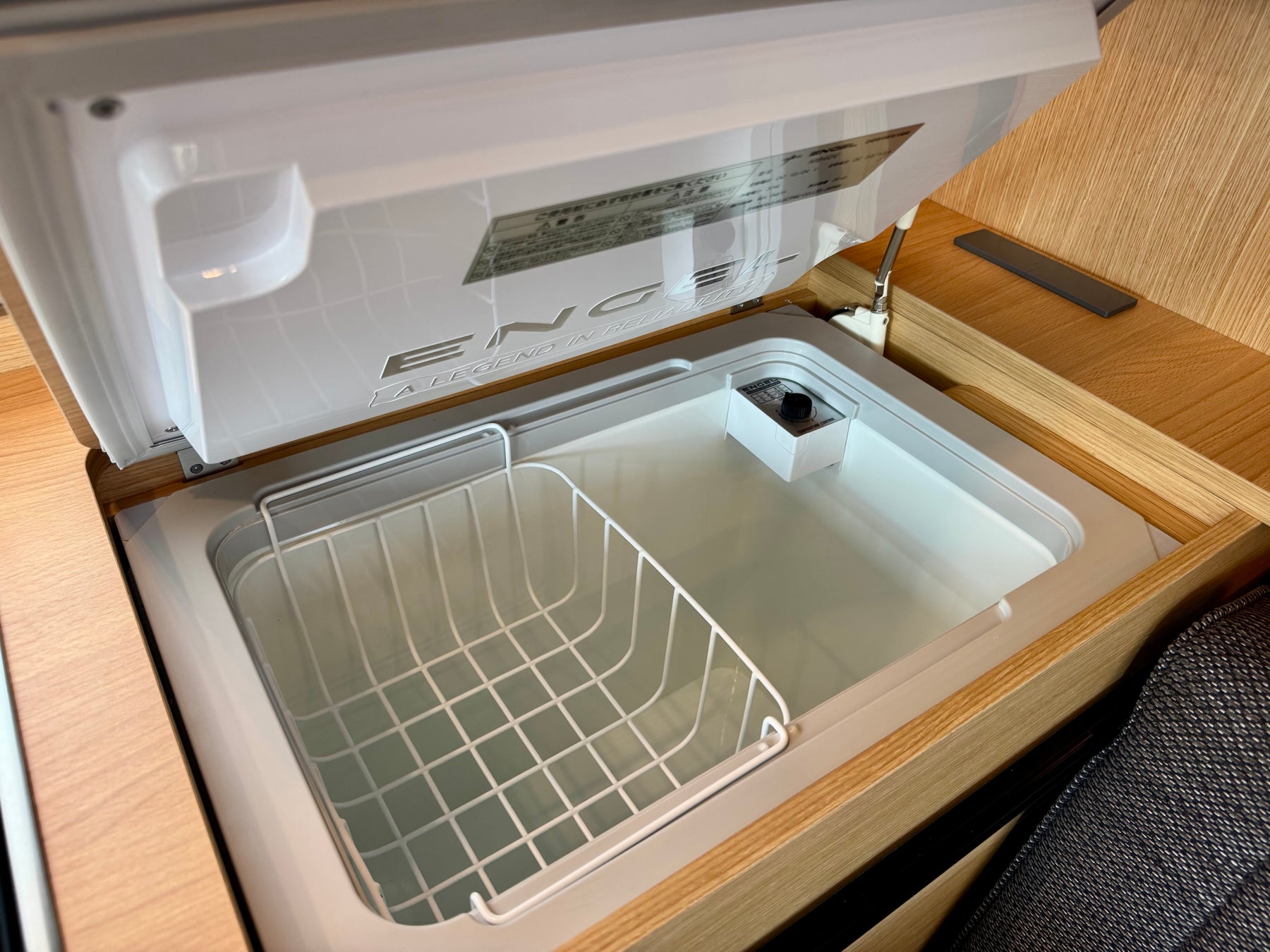 ちょっとした洗い物や手洗い等に活躍するステンレス製のミニシンク(給排水タンク各13L)を搭載。冷凍冷蔵庫はたっぷり40Lの収容力でお土産もたっぷり購入できます♪