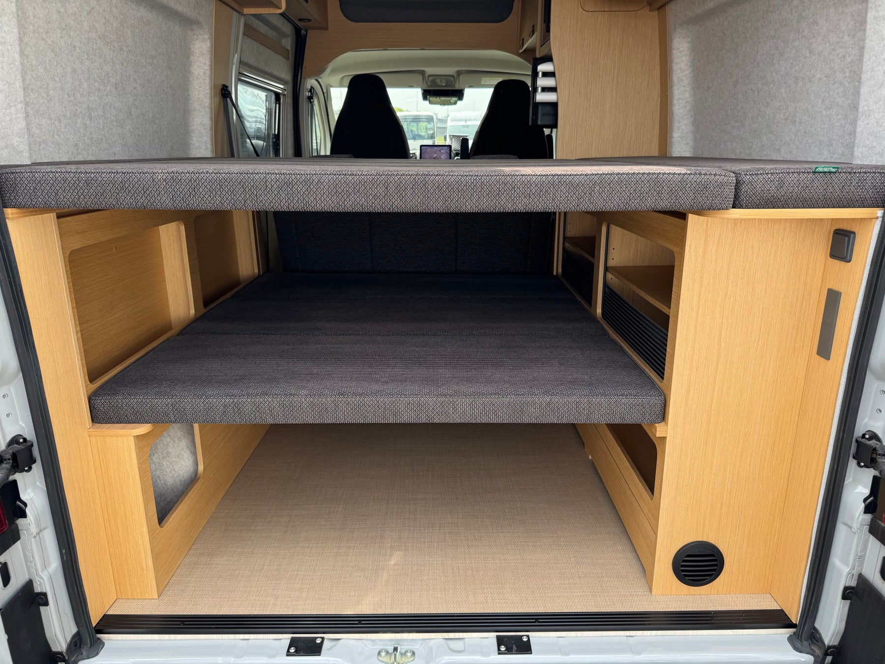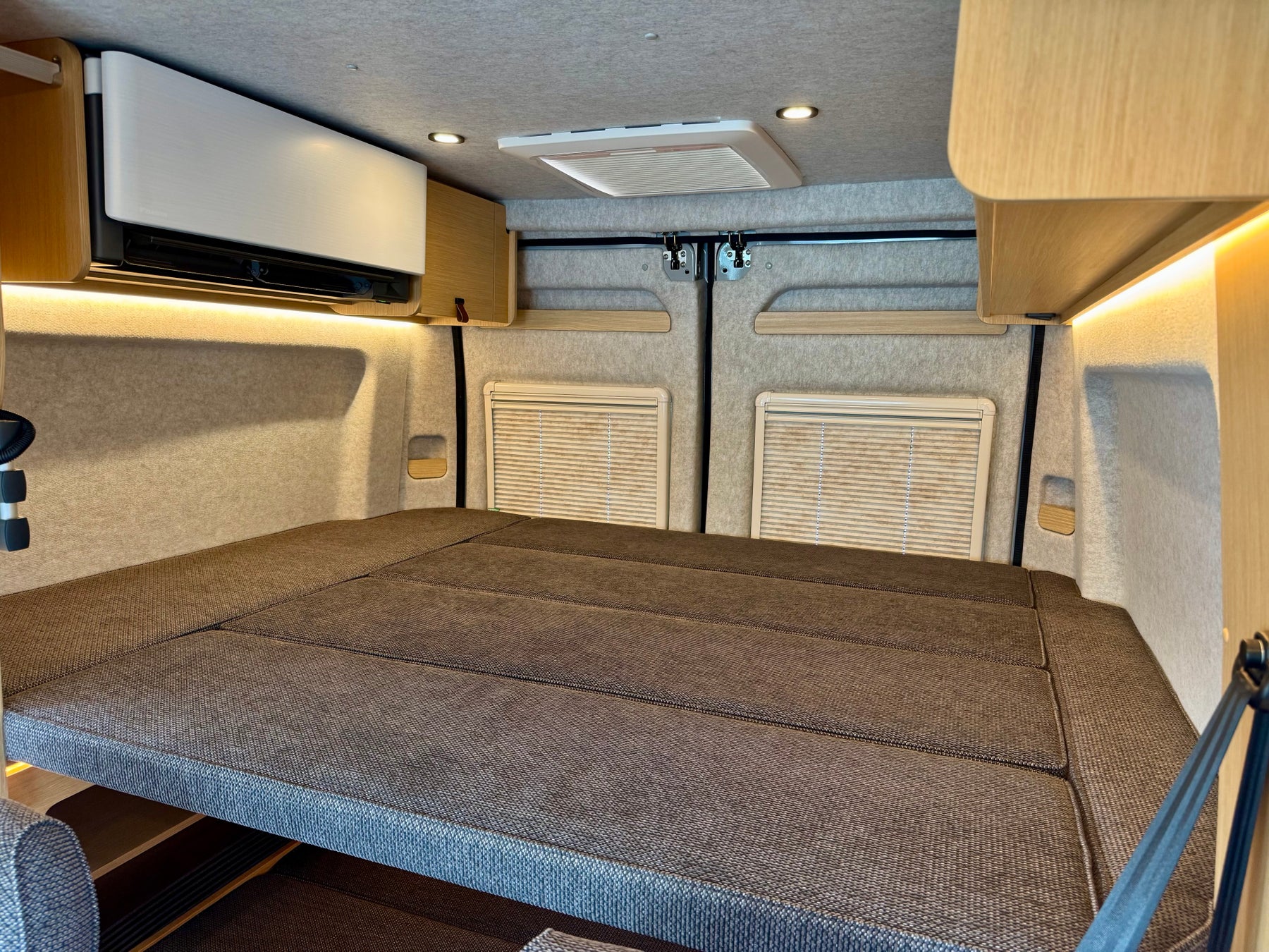 イタリア語で「喜び」を意味するその名の通り、家族全員が笑顔になれる空間を追求しました。広々とした居住空間を最大限に活かし、5名乗車・5名就寝を実現。トイファクトリーのデュカト史上最大のベッド面積を誇ります。