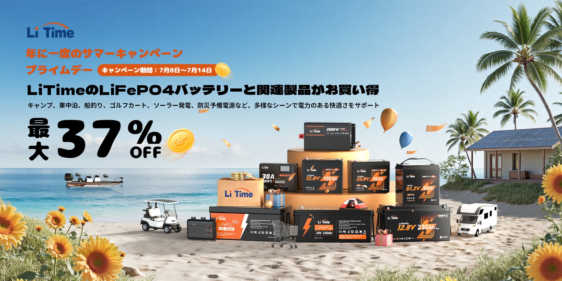 【LiTime】年に一度のAmazonプライムデー!LFPバッテリー、充電器、MPPTコントローラーなど人気製品がなんと最大39%OFF