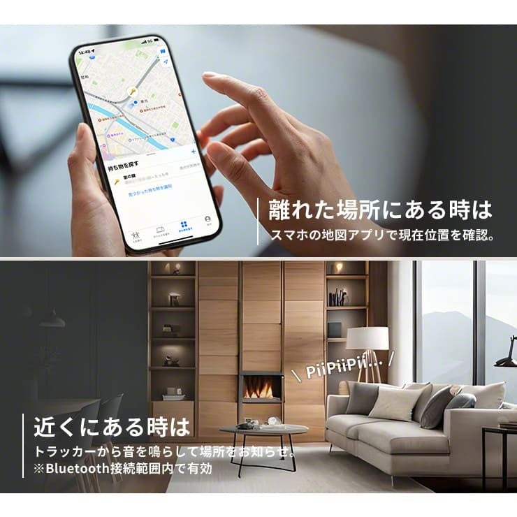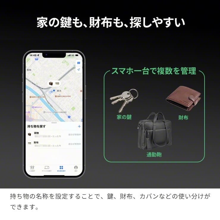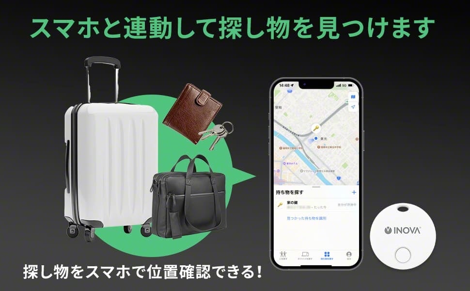 Bluetoothを使用してスマホと繋がり、紛失物を瞬時に見つけることができます。