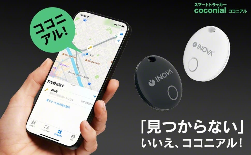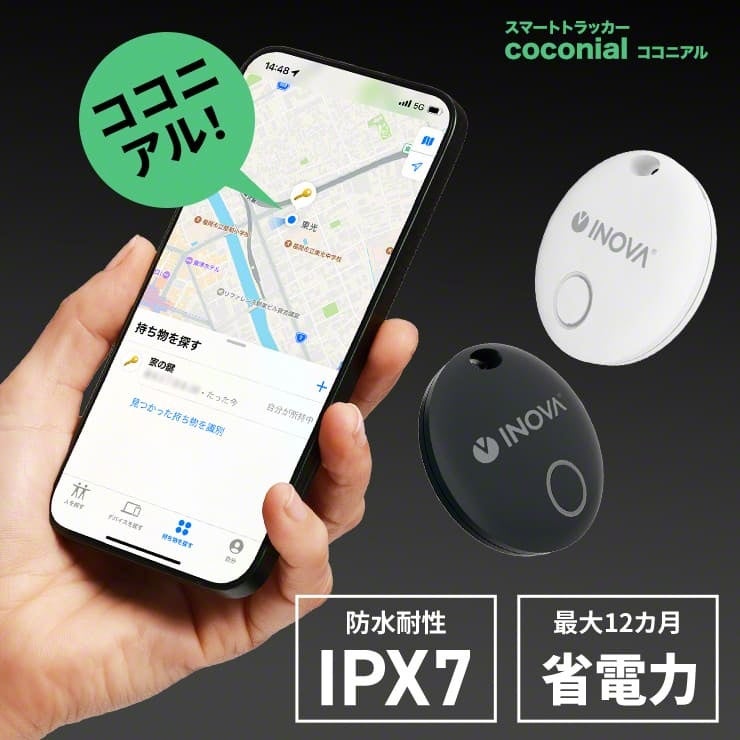 INOVAのスマートトラッカー「ココニアル」は、日常生活で紛失しがちなアイテムを見つけることができる便利なデバイスです。Bluetoothを用いてスマホと連動し、鍵や財布、ペットなどに取り付けるだけで、その位置を簡単に特定できます。