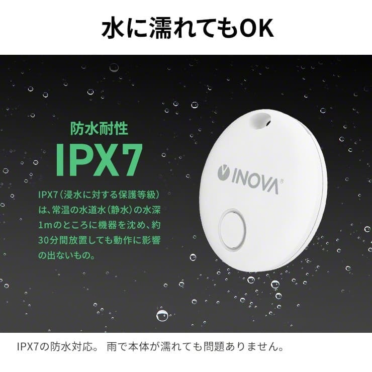 さらに、このデバイスはIPX7の防水対応なので、屋外や雨の日でも安心して使用できます。小型で省電力設計のため、ボタン電池一つで最大12カ月間も使用可能です。