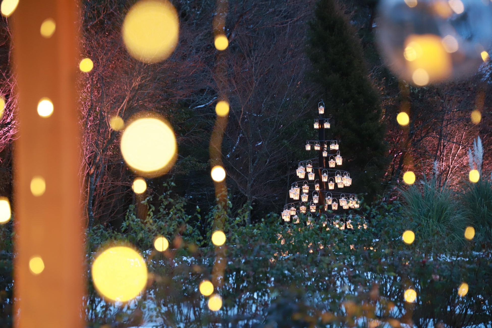 世羅高原花の森のガーデンを教会に見立ててあかりを灯します。夜空に近いこの場所に静かに佇む森の教会で、大切な人と共にヴァージンロードを歩んでみてください。