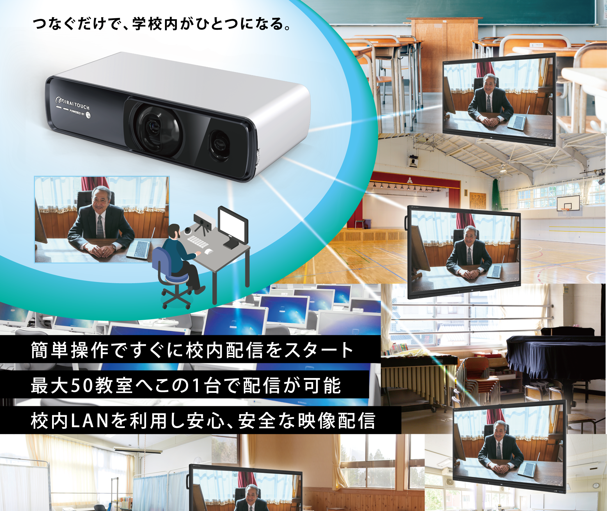 電源ONから2ステップで即運用スタート。校内LANを活用し、高画質・低遅延の映像を最大50教室に配信できる、校内放送ソリューション『MIRAI CAST』をリリース