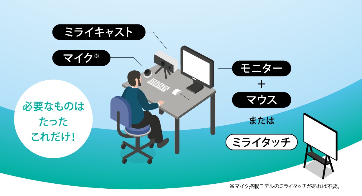 本体以外に必要なのは、普段お使いの「モニター」「マウス」「マイク」のみ。