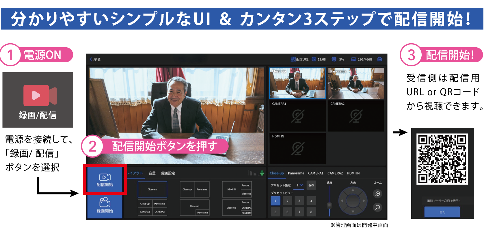 分かりやすいユーザーインターフェースで、迷わず配信が行えます。