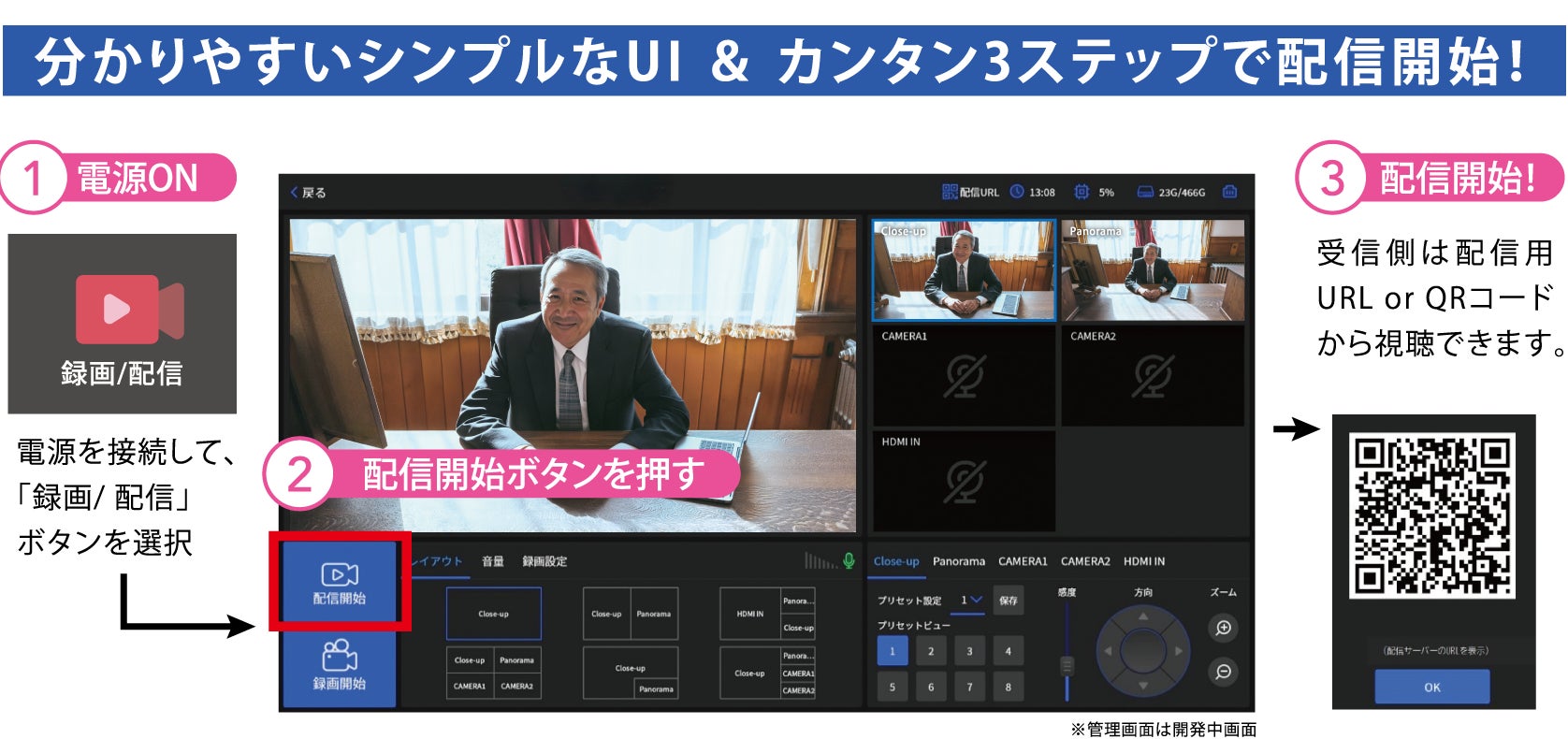 また、配信URLは固定のため、ブックマークからワンクリックで接続できます。
