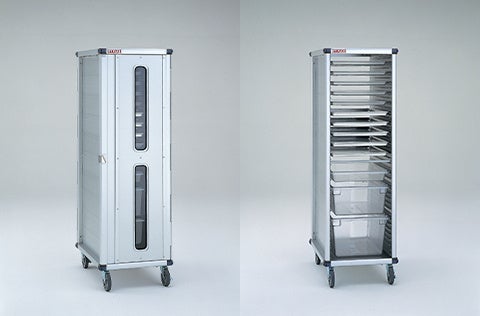 アルマイト仕上げの衛生的で強靭なアルミカート。フードボックス、ホテルパンをはじめ、各種パン、トレイと組み合わせることができます。