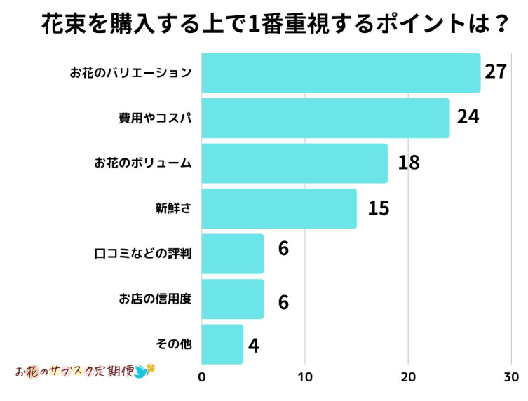 花束を購入する上で1番重視するポイントでの参考にしてみてください。
