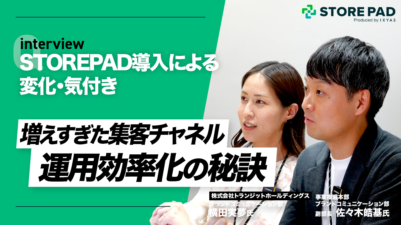 お店とお客様をつなぐAI搭載型の店舗情報発信・分析プラットフォーム「STOREPAD(ストアパッド)」を開発・提供するイクシアス株式会社は、STOREPAD導入の背景・活用方法・成果などについて株式会社トランジットホールディングス様へインタビューした記事・動画を公開しました。