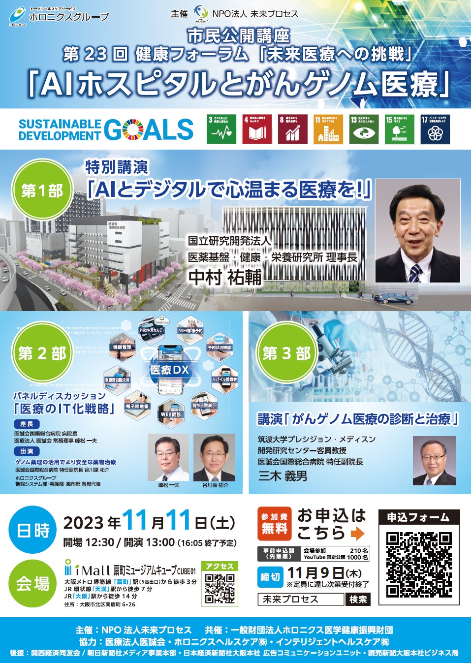 11月11日(土)大阪市北区南扇町で「AIホスピタルとがんゲノム医療」をテーマにした講座を開催します