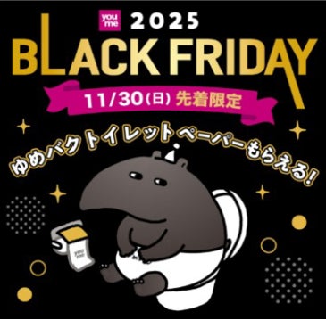 ゆめタウン・ゆめマートのブラックフライデーキャラクター「ゆめバク」デザインのトイレットペーパーをプレゼントします。