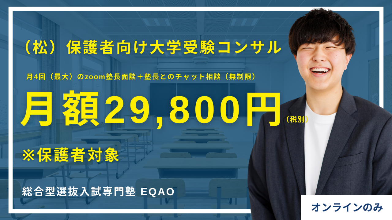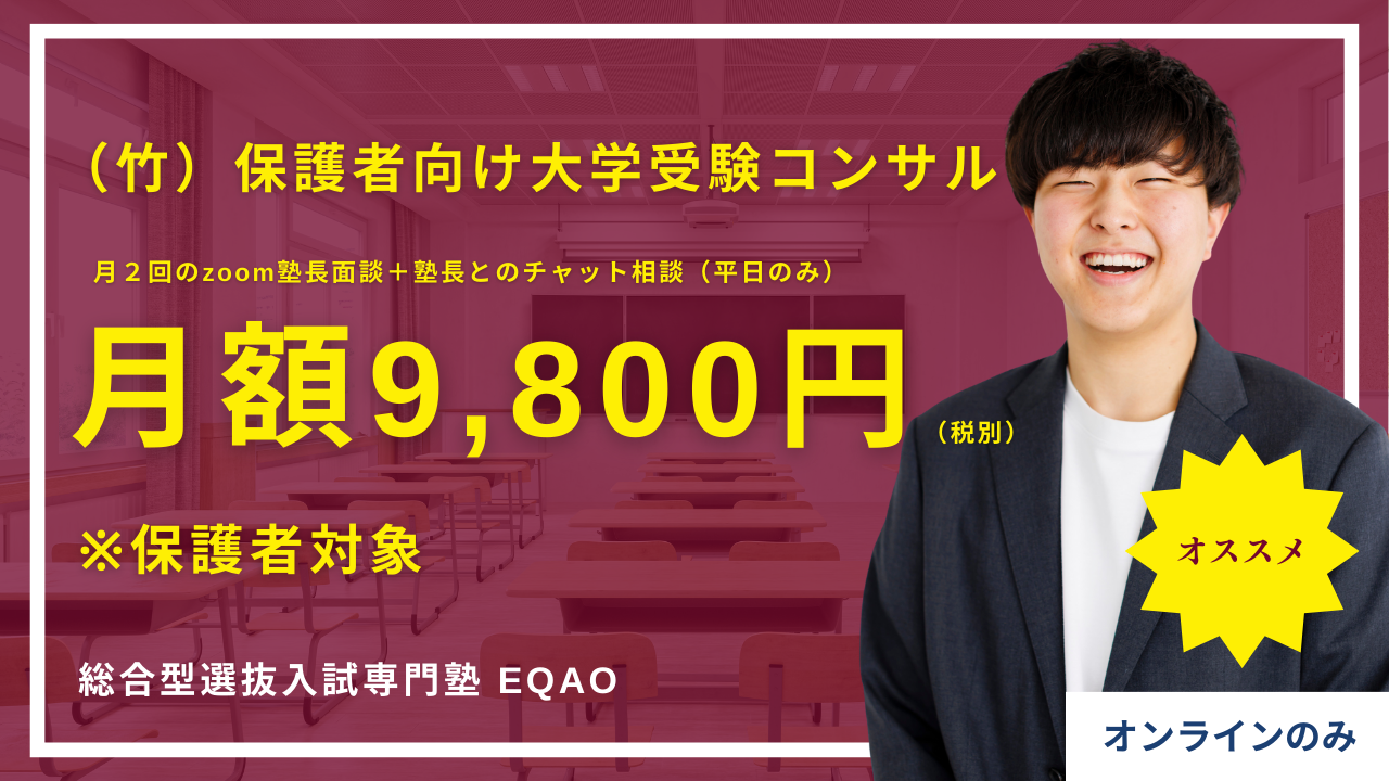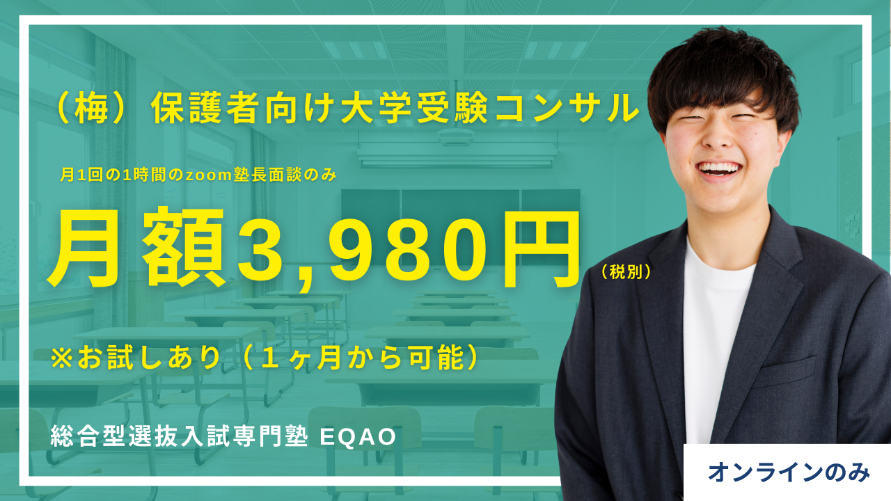 〈25名様限定〉お子様が入塾するか否かは自由!すでに入塾されている保護者様の方ももちろん当サービスをご利用いただけます。少しでも大学受験・総合型選抜に関する不安要素を減らしたい方におすすめです。
