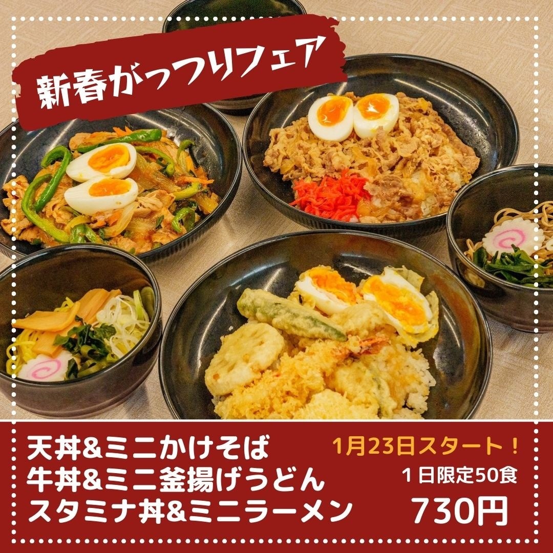 東日印刷〈TONICHI〉 地域開放食堂で「新春がっつりフェア 3種の丼ぶり&麺セット」開催