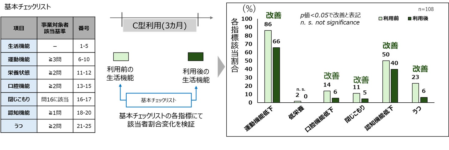 (結果1):通所型サービスC利用前後で利用者の要介護リスク低減