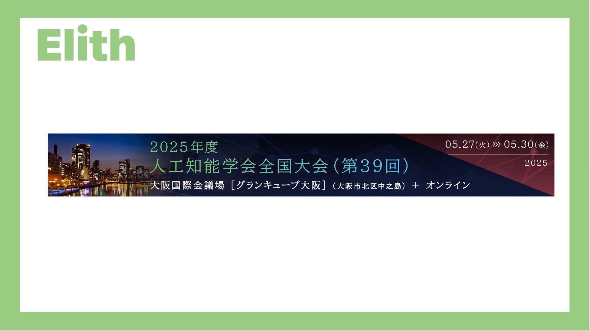 株式会社Elithは、2025年5月27日(火)〜30日(金)に開催される「2025年度 人工知能学会全国大会(JSAI2025)」において、プラチナスポンサーとして協賛いたします。