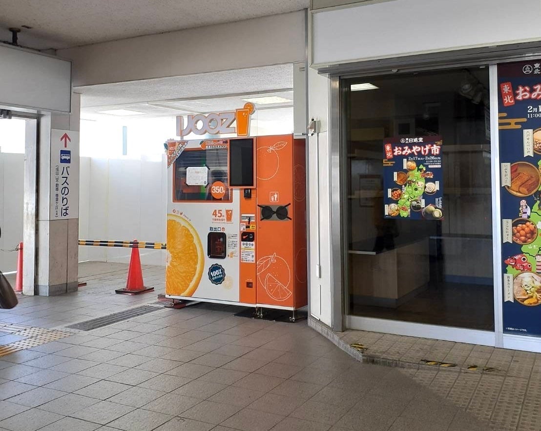 香里園駅に設置の搾りたてオレンジジュース自販機IJOOZ