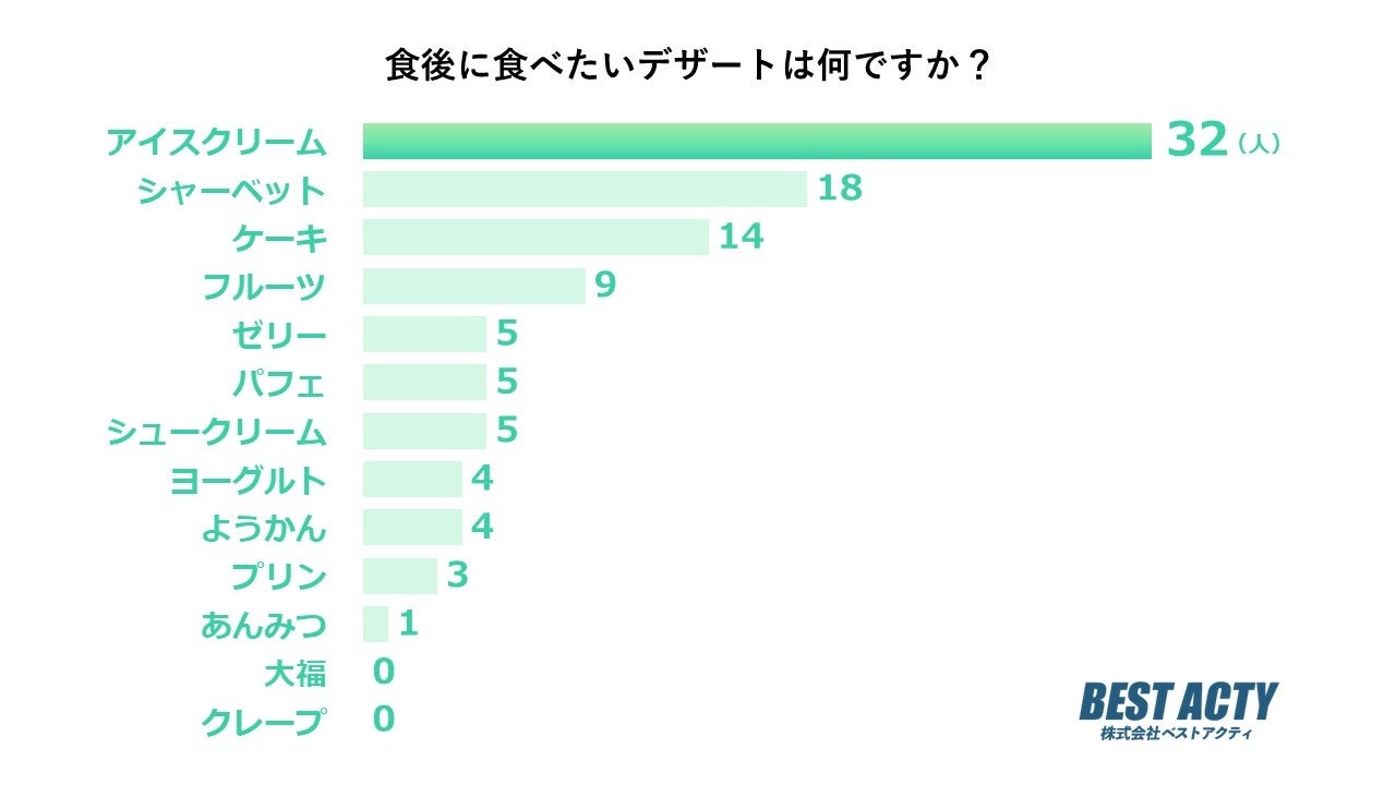 アンケートの結果、「アイスクリーム」と答える人が最も多い結果となりました。