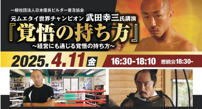 2025年4月11日(金)元ムエタイチャンピオン武田幸三氏講演「覚悟の持ち方」開催決定!