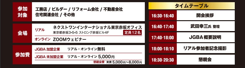 参加対象:工務店、ビルダー、リフォーム会社、不動産会社 限定