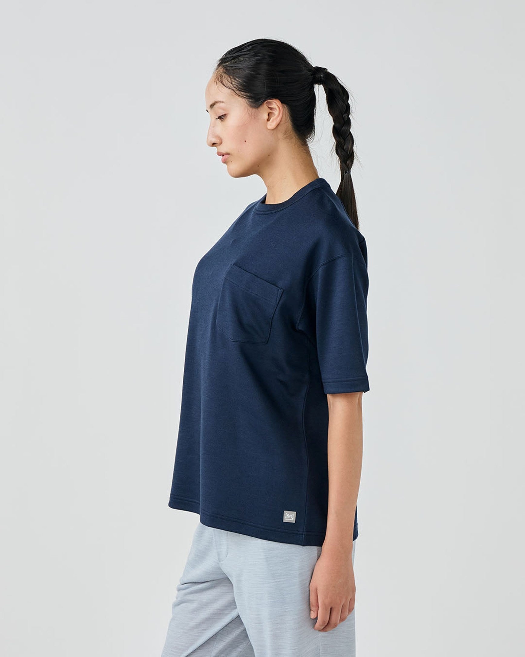 シンプルながらも、ウール混ならではの上品な風合いを活かし、アクセントとなる胸ポケット(Tシャツ)など[sn]super.naturalらしい洗練されたデザイン。アウトドアシーンはもちろん、日常のライフスタイルにも調和してシーズンレスで通年使用が可能なアイテムです。