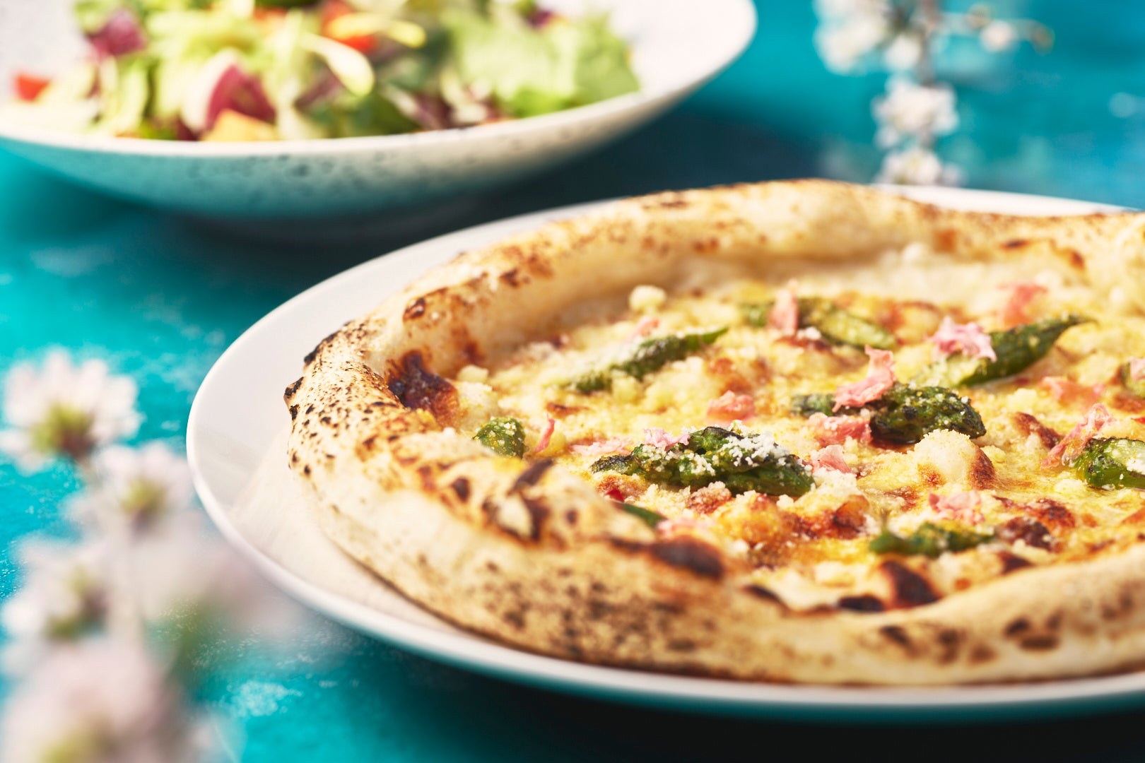 ナポリ出身エグゼクティブシェフが作るピザには桜の花びらを使用し、春に旬を迎えるアスパラガスとチーズを合わせた季節感たっぷりの逸品に仕上げます。