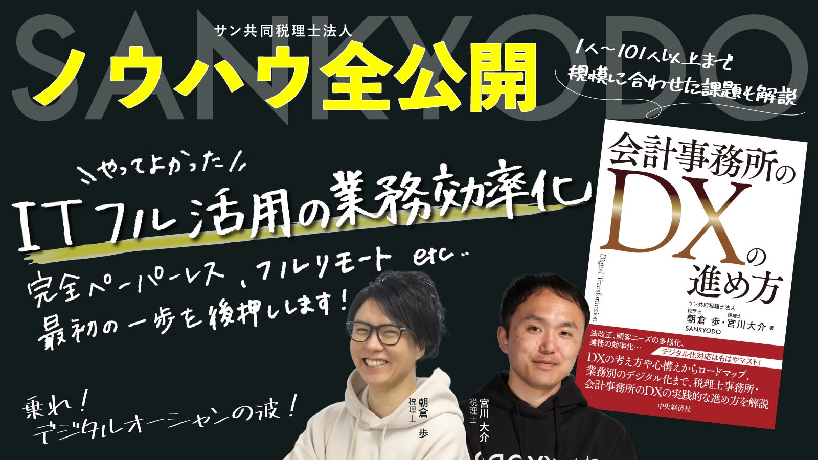 サン共同税理士法人(本社:東京都港区、代表社員: 朝倉 歩)の代表・税理士・朝倉 歩とCTO 税理士・宮川 大介の著書『会計事務所のDXの進め方』が(株)中央経済社ホールディングスより発刊されました。