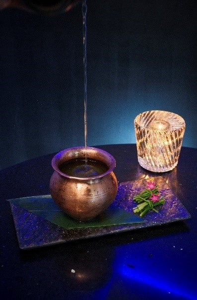 「母国ネパールのスパイスを漬け込んだ季の美 京都ドライジンをベースに、地球の緑を守るメッセージを込めたカクテルを作りました。ヒマラヤ蜂蜜、私の働く東京産海水塩、そしてホテル契約農家から届くキュウリの端材を使用したホームメイドキュウリシロップを使用しています。塩味と甘味、そしてスパイスの絶妙な調和を表現したこのクリエイティブなカクテルを味わうことで、東京銀座を出発し世界を巡る旅の体験をお楽しみいただけます。