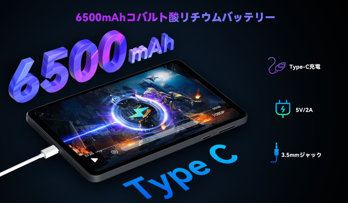 進化点②Alphawolf APad2は6500mAhの大容量バッテリーが内蔵されており、長時間の使用が可能です。また、リチウムコバルト酸電池で耐久性が高く、消費電力も低く、一般的なバッテリーよりも安全性が高いです。それに、エネルギー効率を最大限に引き出すために最適化されて、高効率なプロセッサーとの組み合わせにより、パフォーマンスを損なうことなく、旅行や外出中でもバッテリー残量を気にせず、快適に使用できます。
