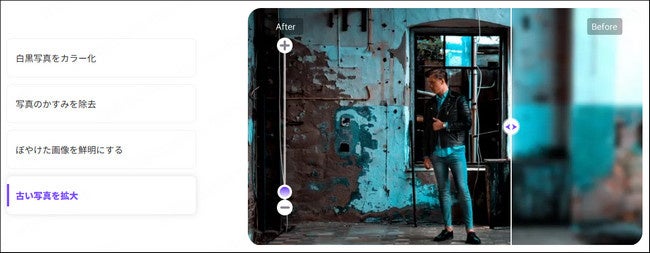 画像修復:ピクセル化、破損、ぼやけ、赤目などを高度に修正。スマホ・カメラ・ネット保存画像など全デバイス対応。複数画像のバッチ修復可能。