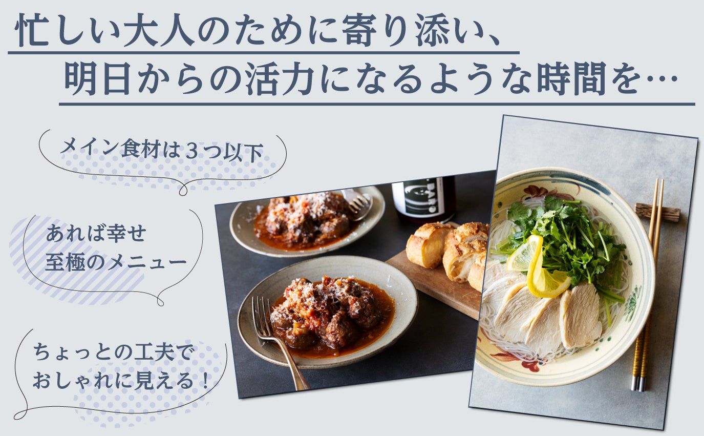 ひとりの大切な時間にも、家族とのゆったり時間にも、好きな人たちと集まって楽しむ時間にも、寄り添ってくれる料理が必ずあります。
