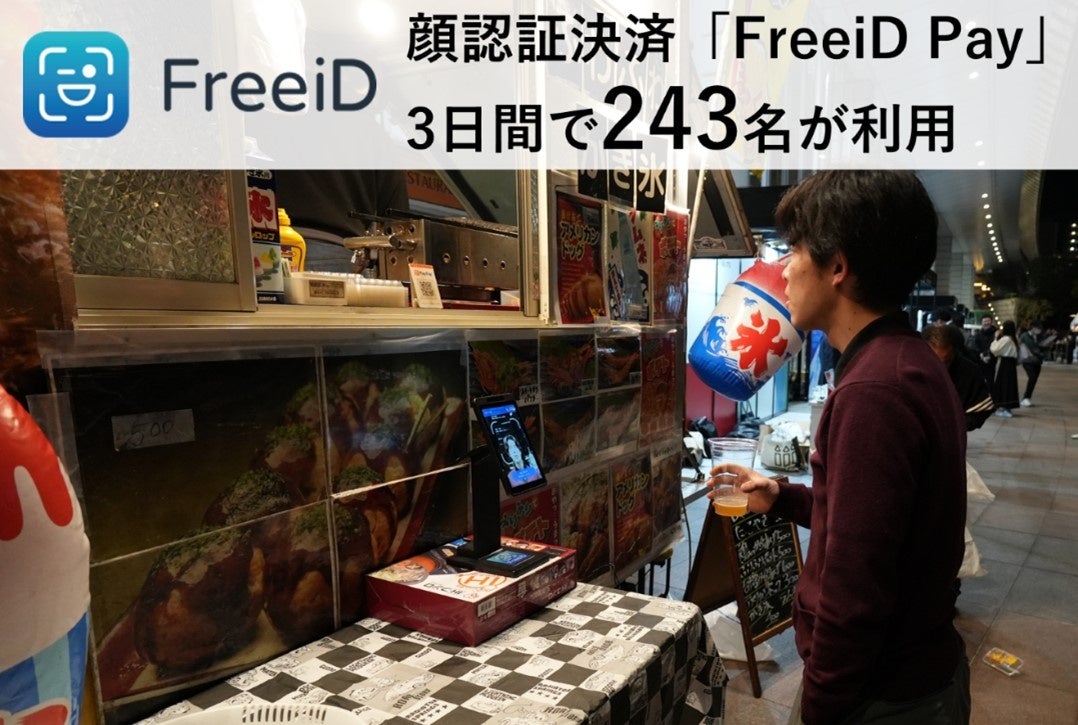 顔認証決済サービス「FreeiD Pay」は、DXYZやDGFTなど複数企業の協業により提供しています。本サービスの実証提供を実施した「SHINAGAWA TECH SHOWCASE」3日間で、延べ243名の来場者に支払い方法として約24万円分、全決済のうち約5回に1回、顔認証決済「FreeiD Pay」をご利用いただく結果を得ることができました。