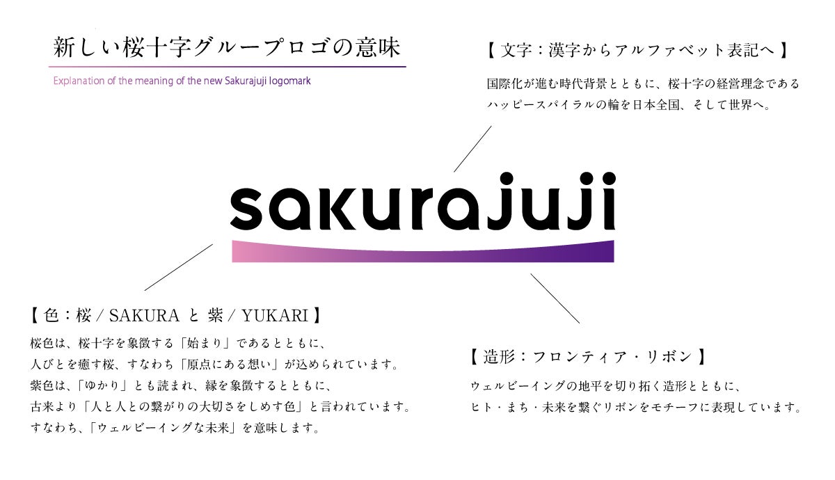 グローバルな展開と認知拡大を見据え、グループ名称の表記を、従来の日本語表記「桜十字」から、アルファベット表記の「sakurajuji」へと変更します。