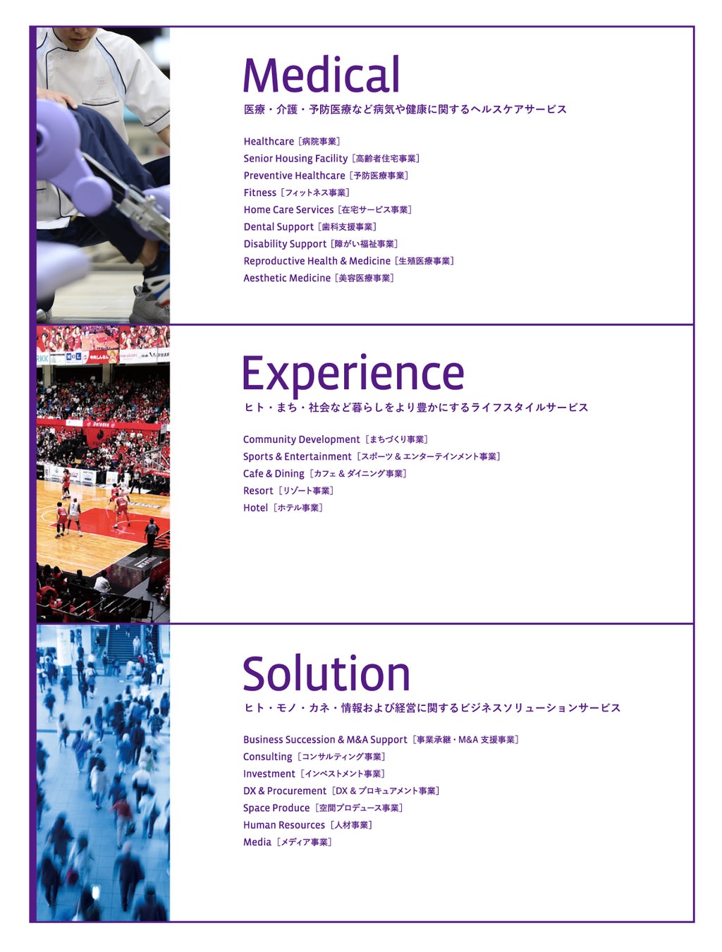 3つの事業領域で人生100年時代の「生きるを満たす。」