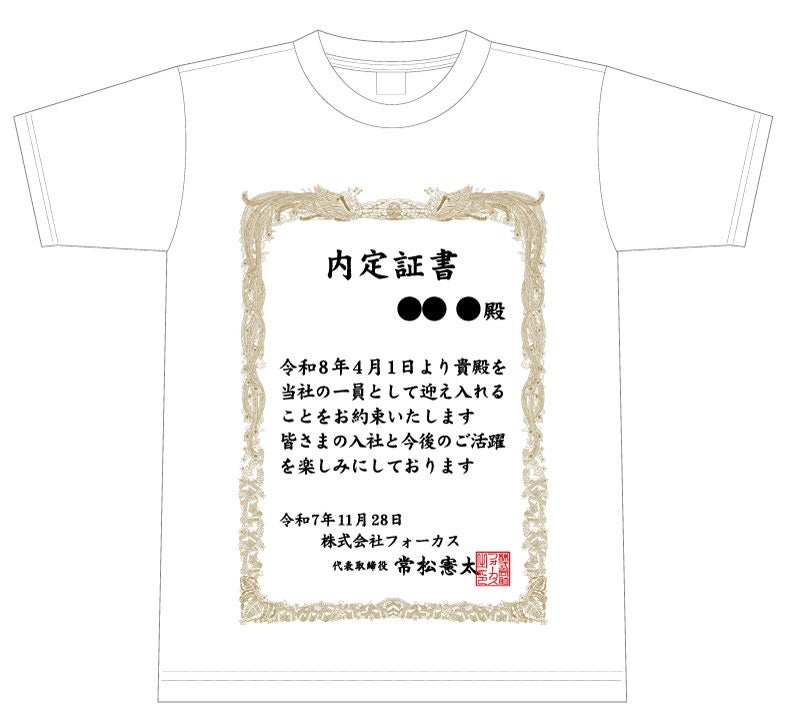 カスタムウェアの販売・製作を行う株式会社フォーカス(本社:山梨県甲斐市、代表取締役:常松憲太)は、2025年11月28日、2026年4月入社予定者を対象とした「入社内定式」を開催しました。